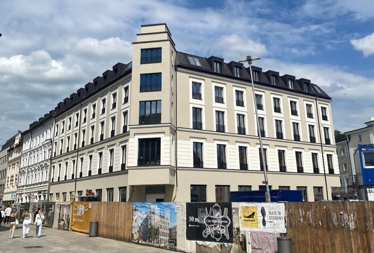 Das Buchner Haus, ein ursprünglich 1877 errichtetes Gebäude, befand sich lange in einem schlechten baulichen Zustand. Aufgrund der maroden Bausubstanz wurde es 2023 abgerissen und nach historischem Vorbild wieder aufgebaut. Vor sechs Monaten wurde das Richtfest gefeiert. Mittlerweile sind zwei weitere Einzelhandelsflächen vermietet. Um welche konkreten Einzelhandelkonzepte es sich handelt, soll erst zu einem späteren Zeitpunkt kommuniziert werden. Die Übergabe der Mietflächen ist für Juni 2025 geplant. Verüfgbar sind aktuell noch zwei Ladenlächen mit ca. 70 Quadratmetern und mit ca. 400 Quadratmetern.